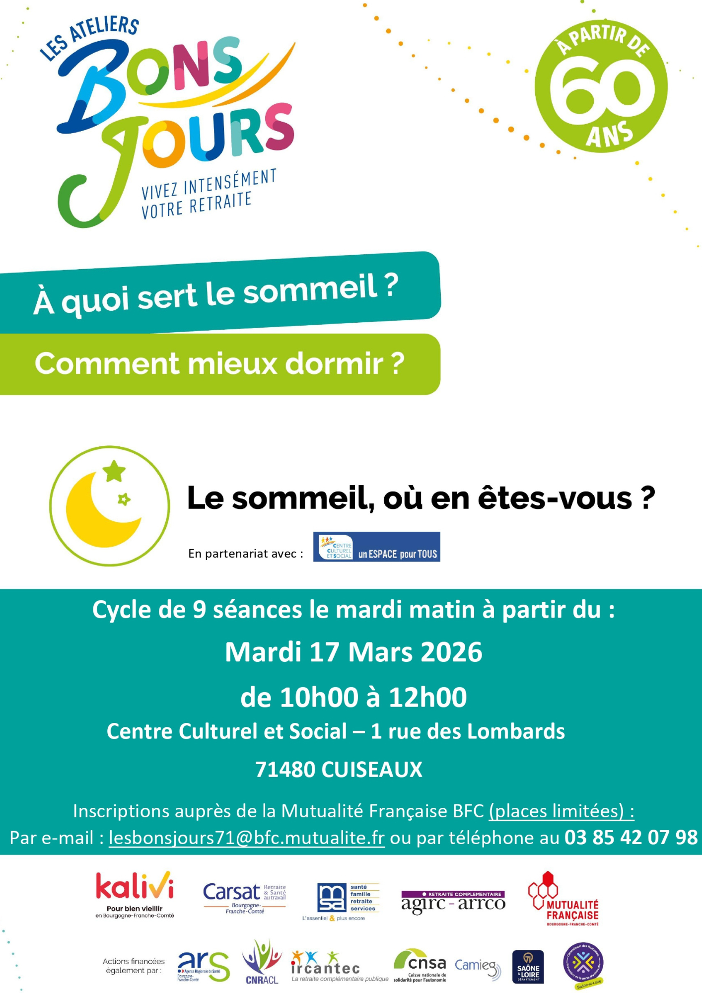 « Tous les Évènements Atelier Bons Jours + 60 ans 17 mars : 10 h 00 min - 12 h 00 min « Atelier Vous avez dit Vaccin + 65 ans Ajouter au calendrier Google Agenda iCalendar Outlook 365 Outlook Live Détails Date : 17 mars Heure : 10 h 00 min - 12 h 00 min Catégorie d’Évènement: Solidarité-Initiatives Organisateur CCS Cuiseaux Téléphone 03 85 72 71 27 E-mail ccs71@orange.fr Lieu Château des Princes d’Orange 1 rue des Lombards Cuiseaux, 71480 France Téléphone 03 85 72 71 27